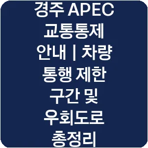 경주 APEC 교통통제 안내|차량 통행 제한 구간 및 우회도로 총정리