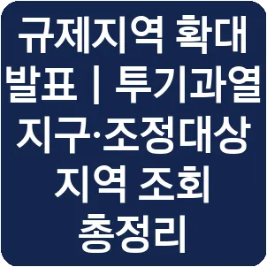 규제지역 확대 발표|투기과열지구·조정대상지역 조회 총정리