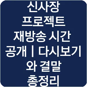 신사장 프로젝트는 2025년 9월 종영 이후 ENA, tvN Drama, 채널A 등 주요 케이블 채널에서 순차적으로 재방송될 예정입니다. 이 기회를 통해 놓쳤던 회차를 다시 감상할 수 있는 좋은 시간이 될 것입니다.