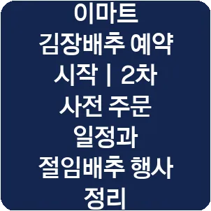 12월이 가까워오면 김장 담그는 준비가 슬슬 시작되죠? 김장철을 맞아 절임배추를 미리 챙기려는 분들이 많아질 시기인데요. 특히 10월 23일부터 대형마트 3곳에서 절임배추 판매를 시작했다고 해요. 주문은 29일까지 가능하니, 어떤 방법으로 진행할 수 있는지 알려드릴게요!