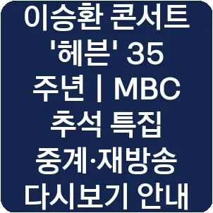 어느덧 무대 위에서 35년을 채우신 이승환 씨, 이번 추석엔 그 여정을 기념하는 특별한 무대가 MBC 특집 방송으로 마련되었다고 해요. 공연 제목은 ‘헤븐(HEAVEN)’인데, 듣기만 해도 무대가 얼마나 환상적으로 꾸며졌을지 기대가 되죠?