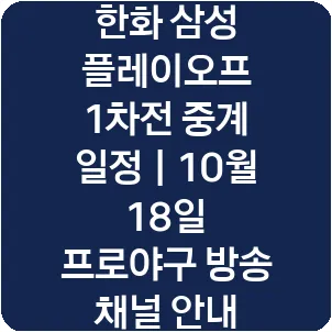 한화 삼성 플레이오프 1차전 경기 일정 및 중계 방송 채널 총정리
