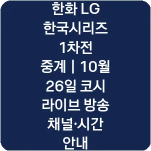 한화 LG 한국시리즈 1차전 중계|10월 26일 코시 라이브 방송 채널·시간 안내