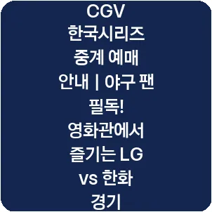 이번 한국시리즈는 단순히 안방에서 TV로 시청하는 것을 넘어서, CGV 극장에서 생중계로 만나볼 수 있어요. 현장에 직접 가지 못하는 팬들에게는 새로운 직관 방식이 마련된 셈이죠.