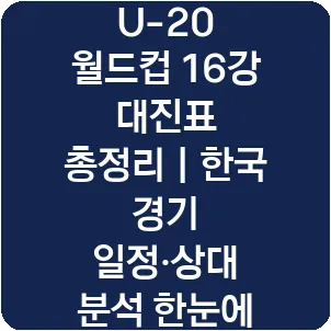 U-20 월드컵 16강 일정이 헷갈리시죠? 한국 경기 시간, 상대팀 정보, 중계 채널을 한눈에 정리했습니다. 이제 어디서 언제 봐야 할지 고민할 필요 없어요! 클릭만 하면 한국 U-20 대표팀의 8강 진출 가능성과 핵심 포인트까지 빠르게 확인할 수 있습니다. 놓치면 후회할 꿀정보!
